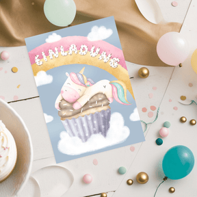 Mit unseren fröhlichen Einhorn Einladungskarten kannst Du alle Deine Freunde zum bevorstehenden Kindergeburtstag einladen.