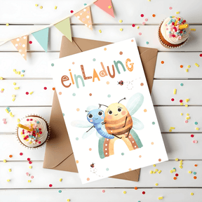 Mit unseren fröhlichen Bienen Einladungskarten kannst Du alle Deine Freunde zum bevorstehenden Kindergeburtstag einladen.